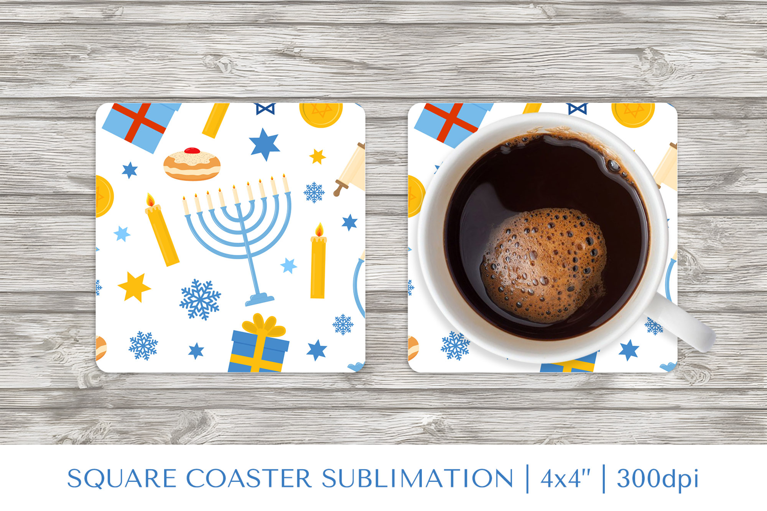 Hanukkah square coaster sublimation. Jewish coaster PNG 08 example image 1