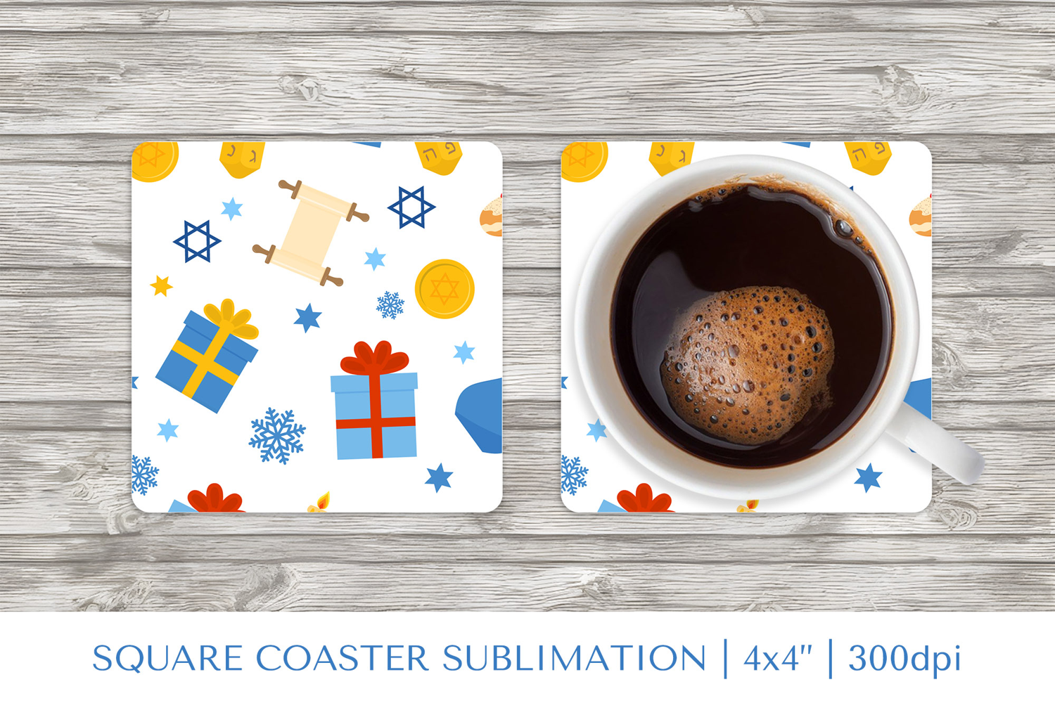 Hanukkah square coaster sublimation. Jewish coaster PNG 10 example image 1
