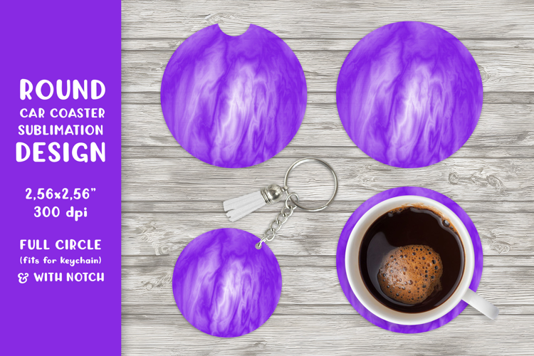 Purple marble car coaster sublimation. Round design SGCC01 example image 1