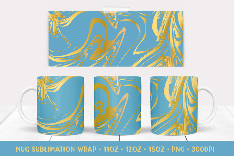 Texture Coffee Gold Design Flow Blue Mug Wrap Marble Sublimation