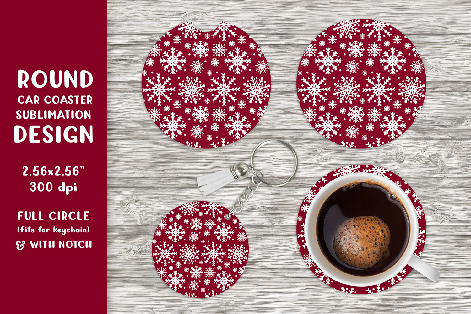 Similar Design Products to Winter car coaster sublimation. Snowflakes round coaster 07