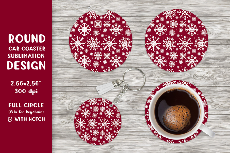 Winter car coaster sublimation. Snowflakes round coaster 07 example image 1
