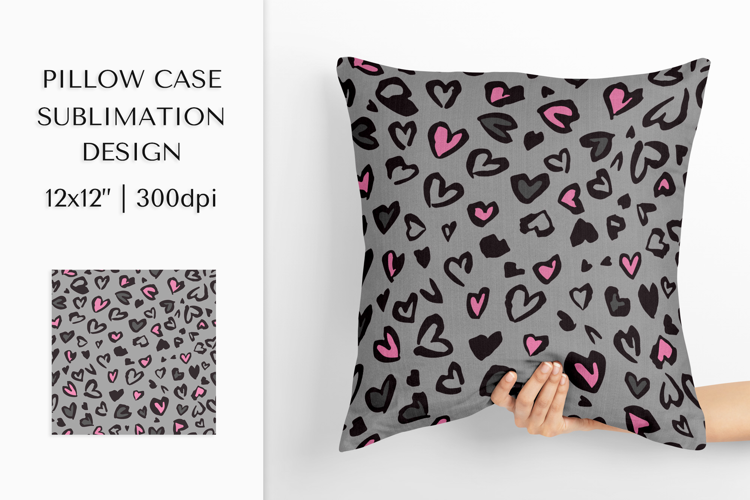 Heart Leopard Pillow Case Sublimation. Valentines Pillow 002 example image 1