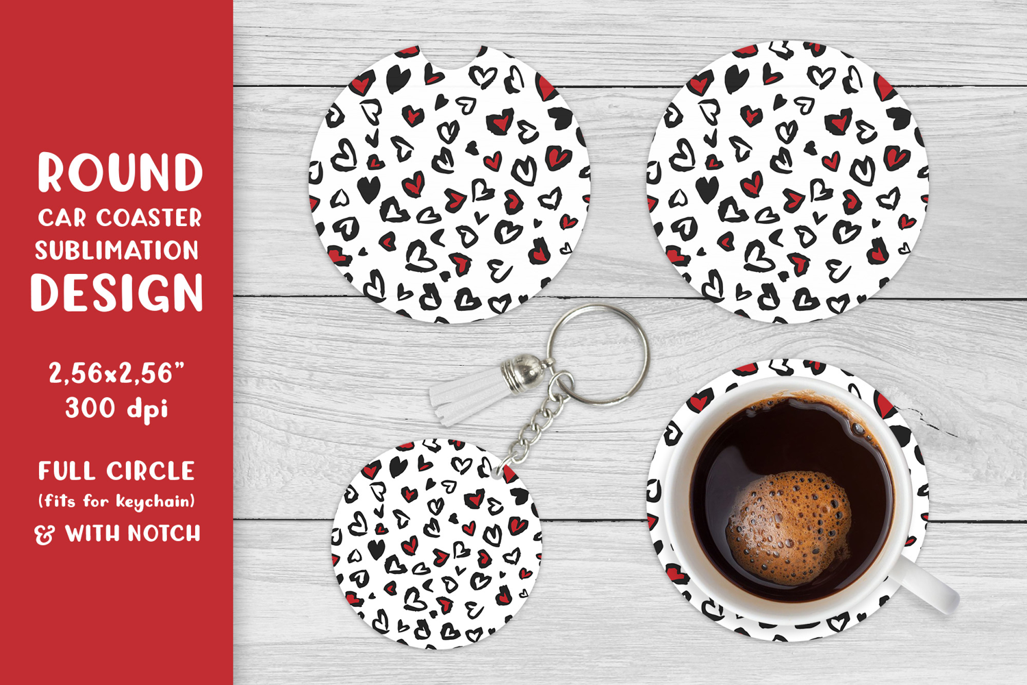Heart leopard car coaster sublimation. Round coaster 004 example image 1