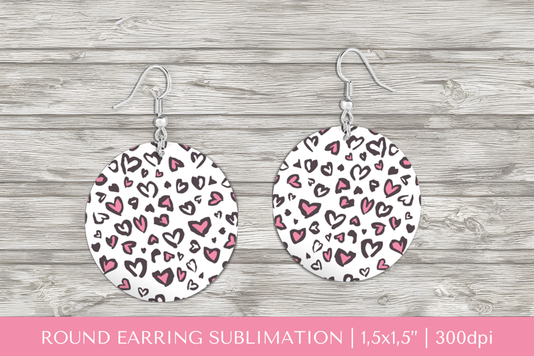 Valentine Round Print Design Valentines Heart Gift Leopard Sublimation Earring