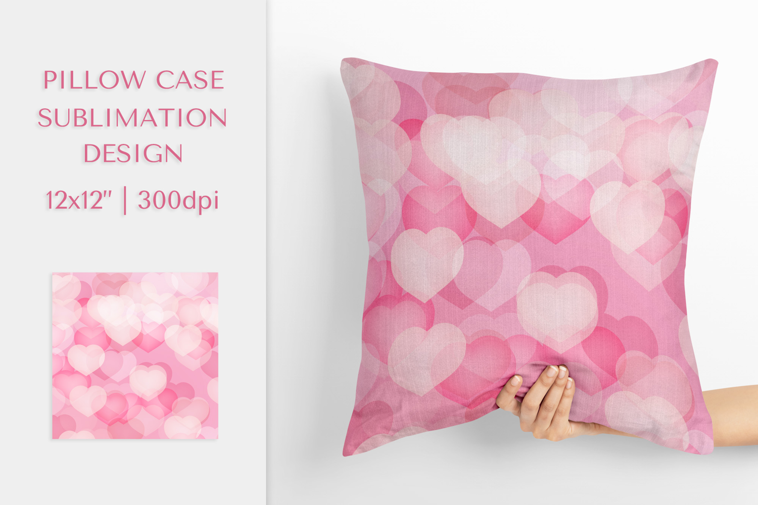 Pink Hearts Pillow Case Sublimation. Valentines Pillow 003 example image 1