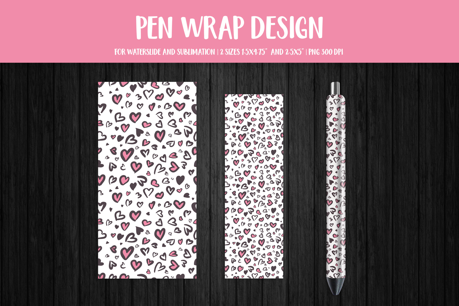 Similar Design Products to Heart Leopard Pen Wrap Sublimation, Valentines Pen Design 07
