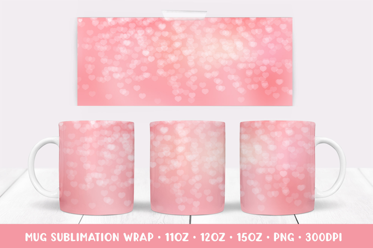 Pink Hearts Mug Sublimation Design. Valentines Mug Wrap 032