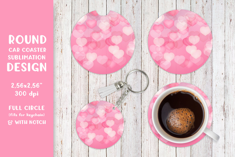 Hearts car coaster sublimation. Valentines round coaster 008 example image 1