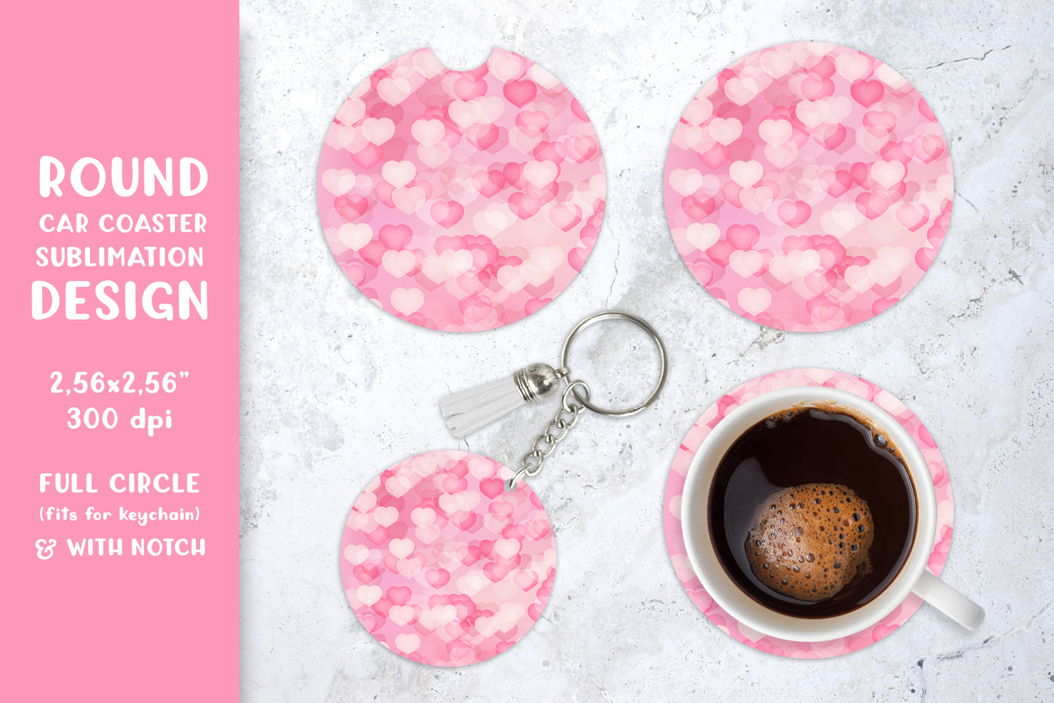 Hearts car coaster sublimation. Valentines round coaster 010