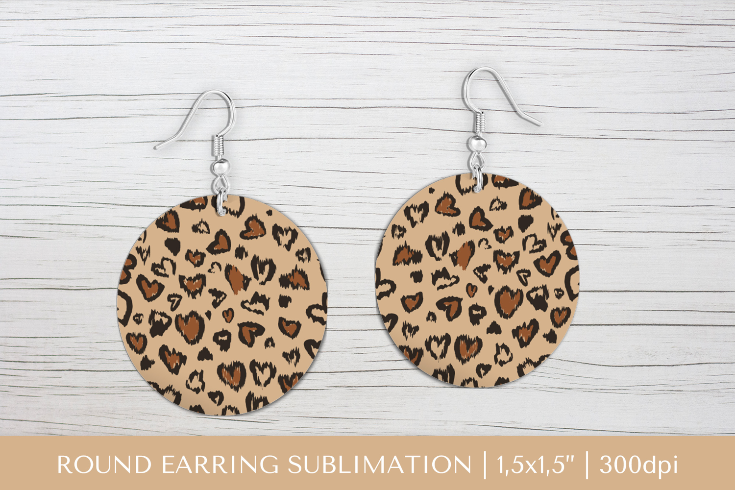 Valentine Round Design Valentines Heart Gift Day Leopard Sublimation Earring