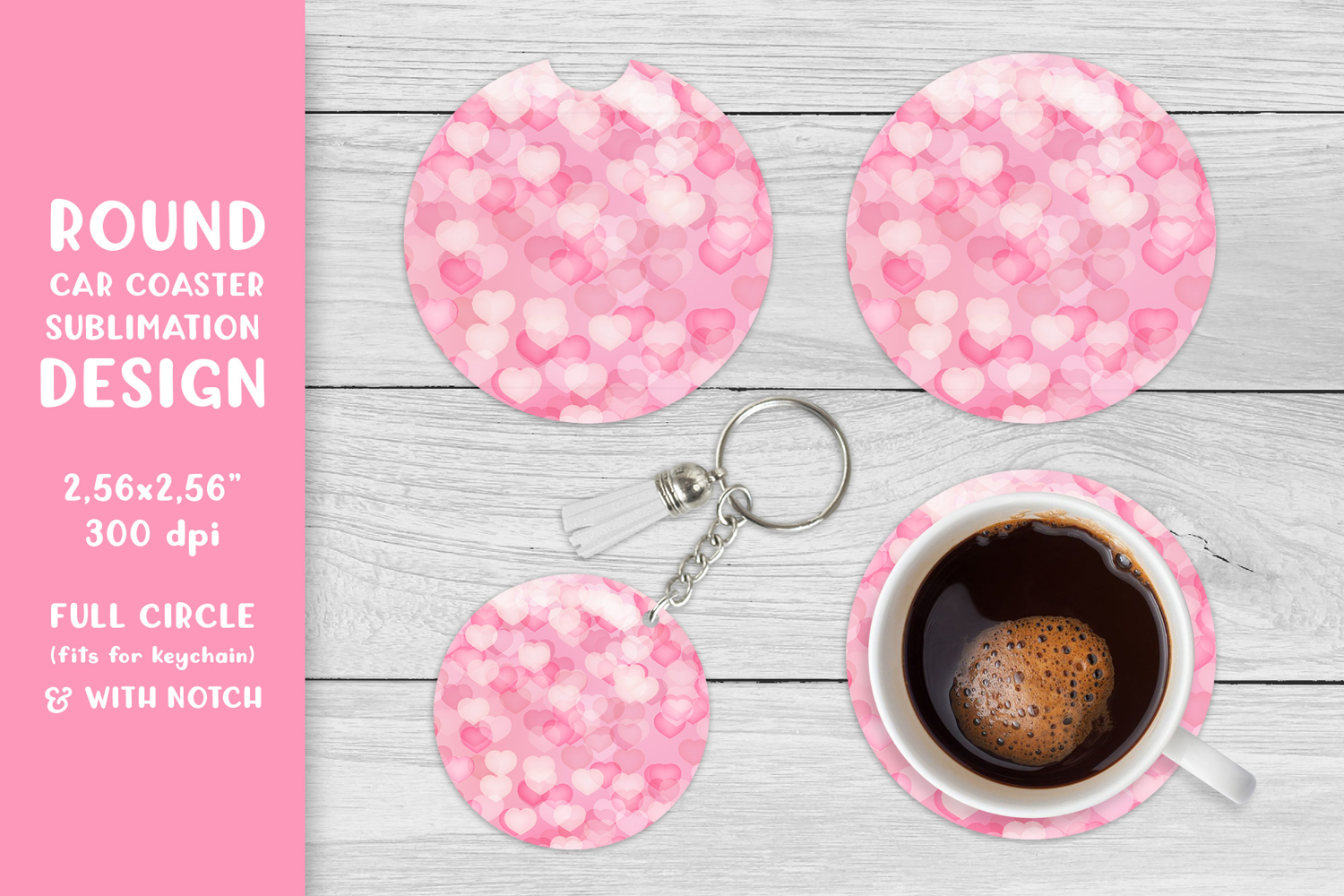 Hearts car coaster sublimation. Valentines round coaster 012