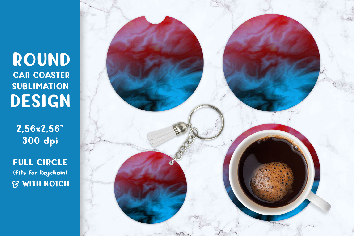 Similar Design Products to Red blue marble car coaster sublimation Round design SGCC10