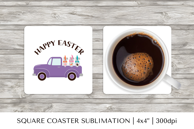 Retro Cute Easter Square Png Gift Truck Sublimation Coaster Gnomes