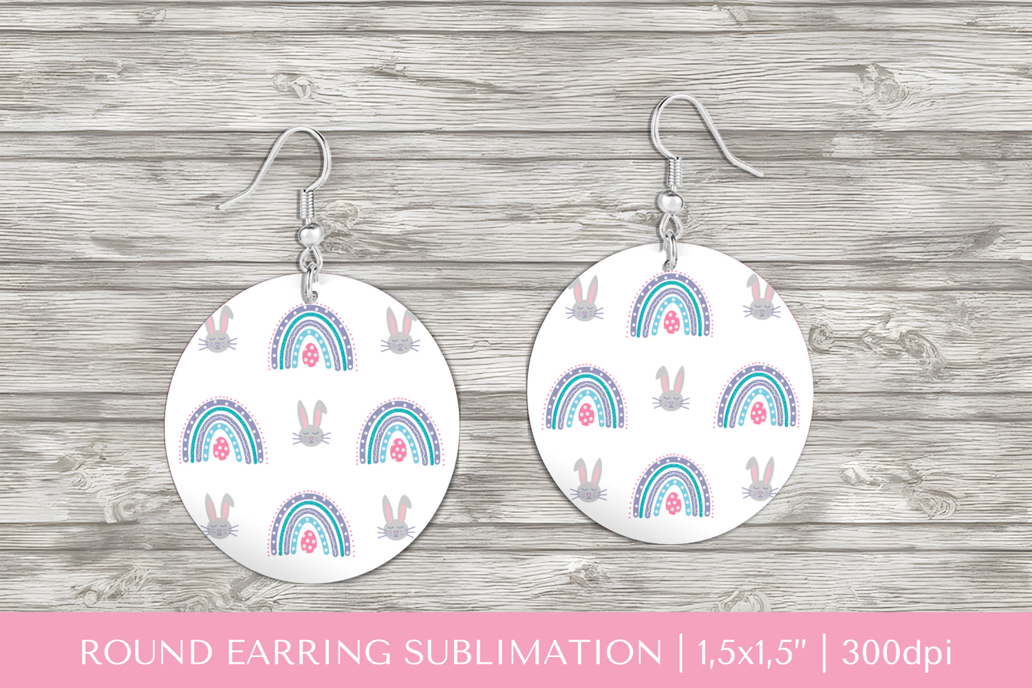 Round Cute Design Easter Bunny Gift Rainbow Sublimation Earrings Epoxy