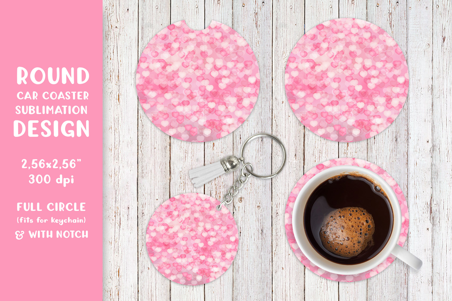 Hearts car coaster sublimation. Pink round coaster 016 example image 1