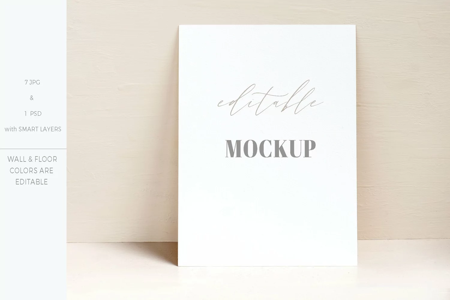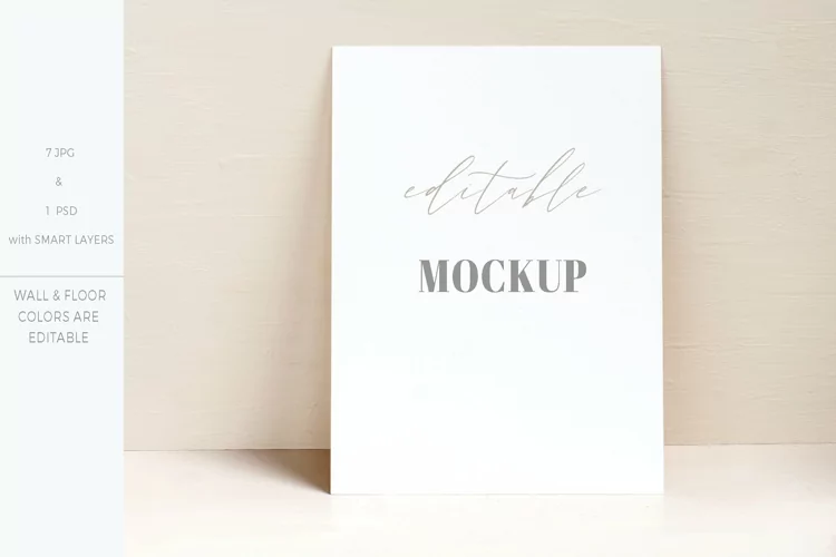 After downloading you will receive 1 PSD file with smart object layers so you can easily add your quotes or artwork and edit background color, both floor and wall
