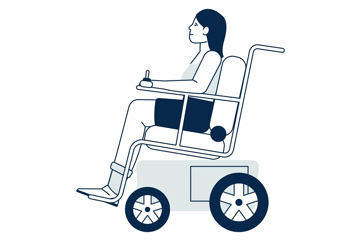 Woman sit in wheelchair. Paralyzed person. Disabled characte