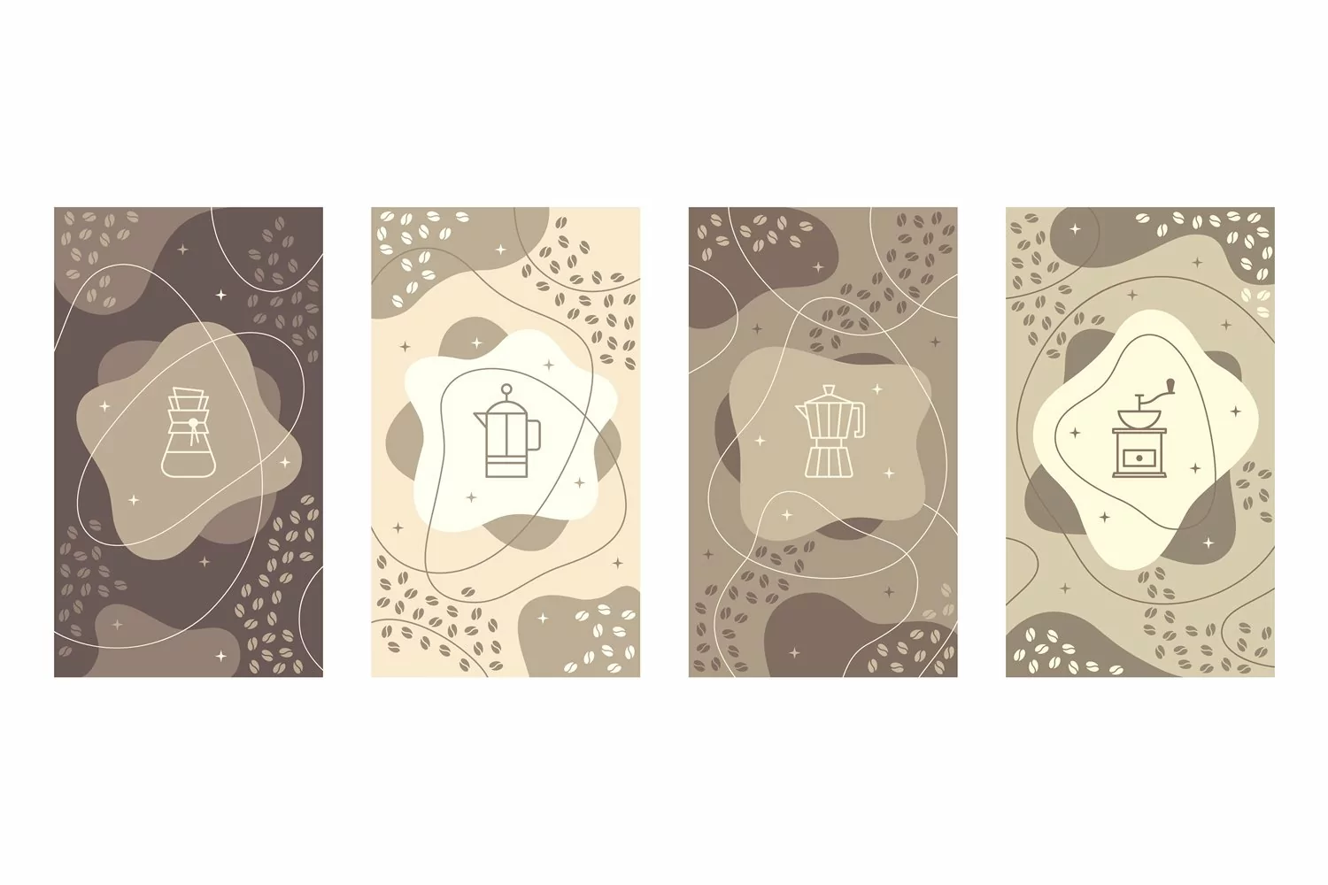 Coffee flyers or covers template, decorative fluid spots and lines. Organic vertical background, morning drinks simple tidy vector banners of cover flyer with coffee background template illustration