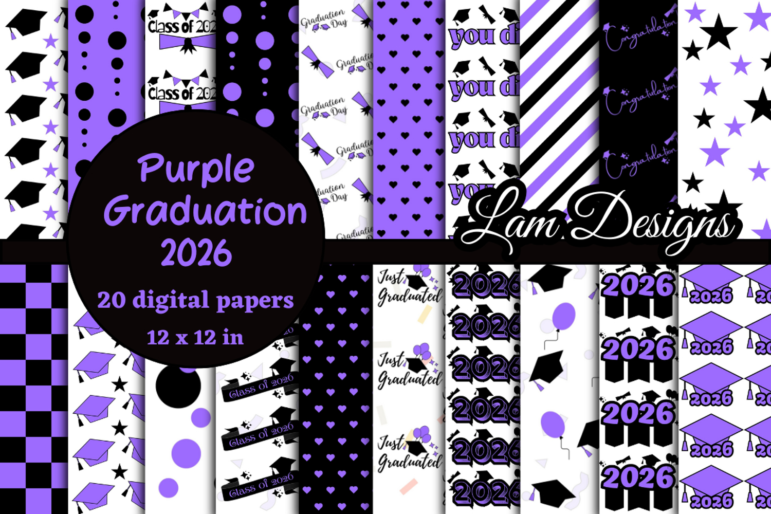 Graduation 2026 purple digital papers