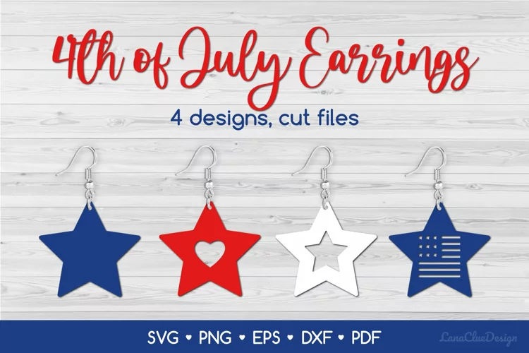4th of July Earrings - Star Earrings cut files. The set consists of 4 designs.