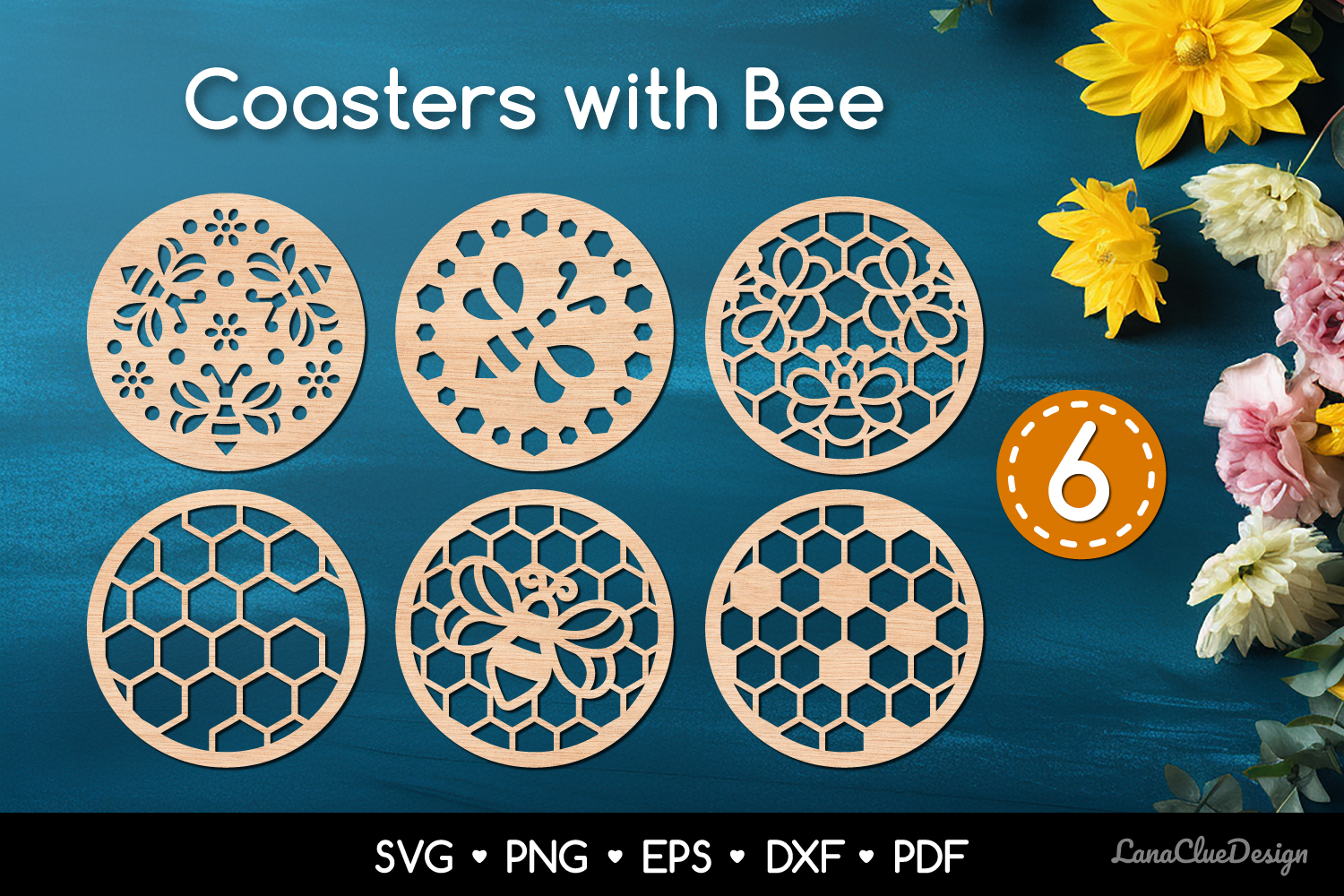 Kitchen Decor Svg Laser Cut Template Circle Decorative Panel Bee Laser Cut Coaster Cut File Cnc Cut Honeycomb Coaster Round Coaster Design Svg Bee Cutting Template Bee Coaster Svg Bundle