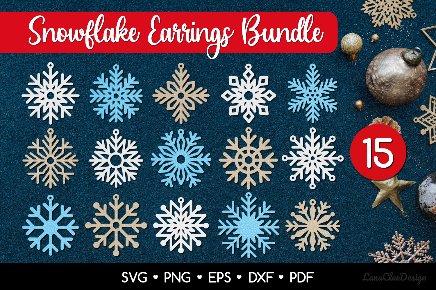 15 Snowflake Earrings SVG Bundle, Christmas Jewelry Template