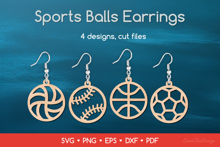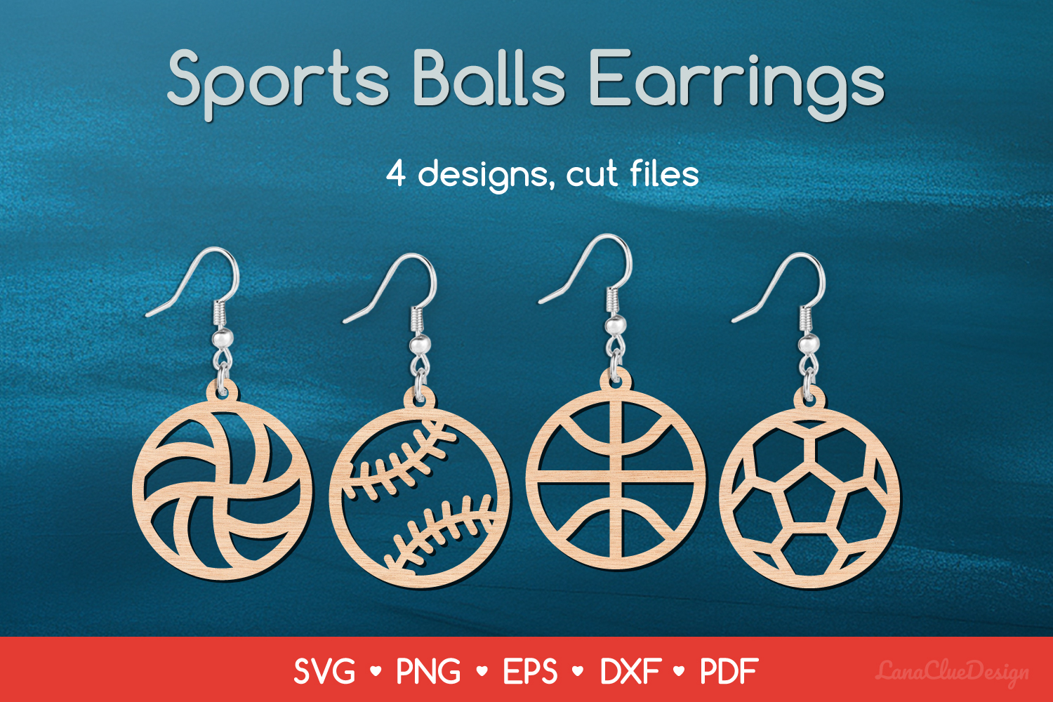 Sports Balls Earrings, Pendant or Keychain Template cut files. The set consists of 4 designs - Volleyball, Baseball, Basketball and Soccer.