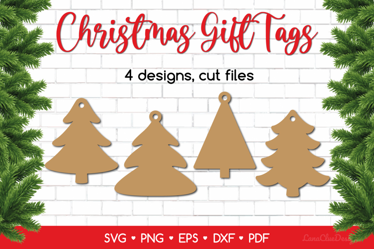 Christmas Tree Shaped Gift Tags - Decorative Xmas Hanging Tag Templates. The set consists of 4 designs. These files are compatible with Cricut, Silhouette, Cnc, Laser and other Cutting Machines.