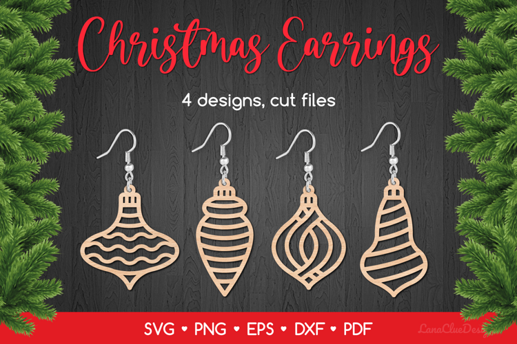 Christmas Ormament Earrings, Pendant or Keychain cut files - Christmas Jewelry Template. The set consists of 4 designs.