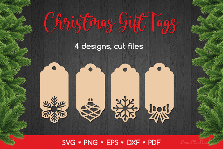 Christmas Gift Tags - Label and Price Tags Templates. The set consists of 4 designs. These files are compatible with Laser, CNC, Cricut and Silhouette Cutting Machines.