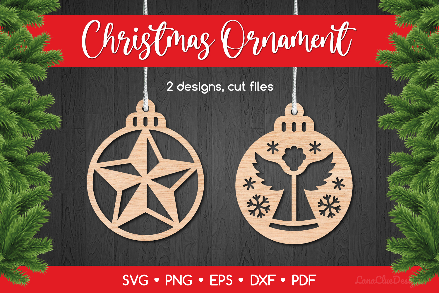 Round Christmas Ornaments. The product consists of 2 designs with Star and Angel. Templates for laser, plotter and cnc cutting.