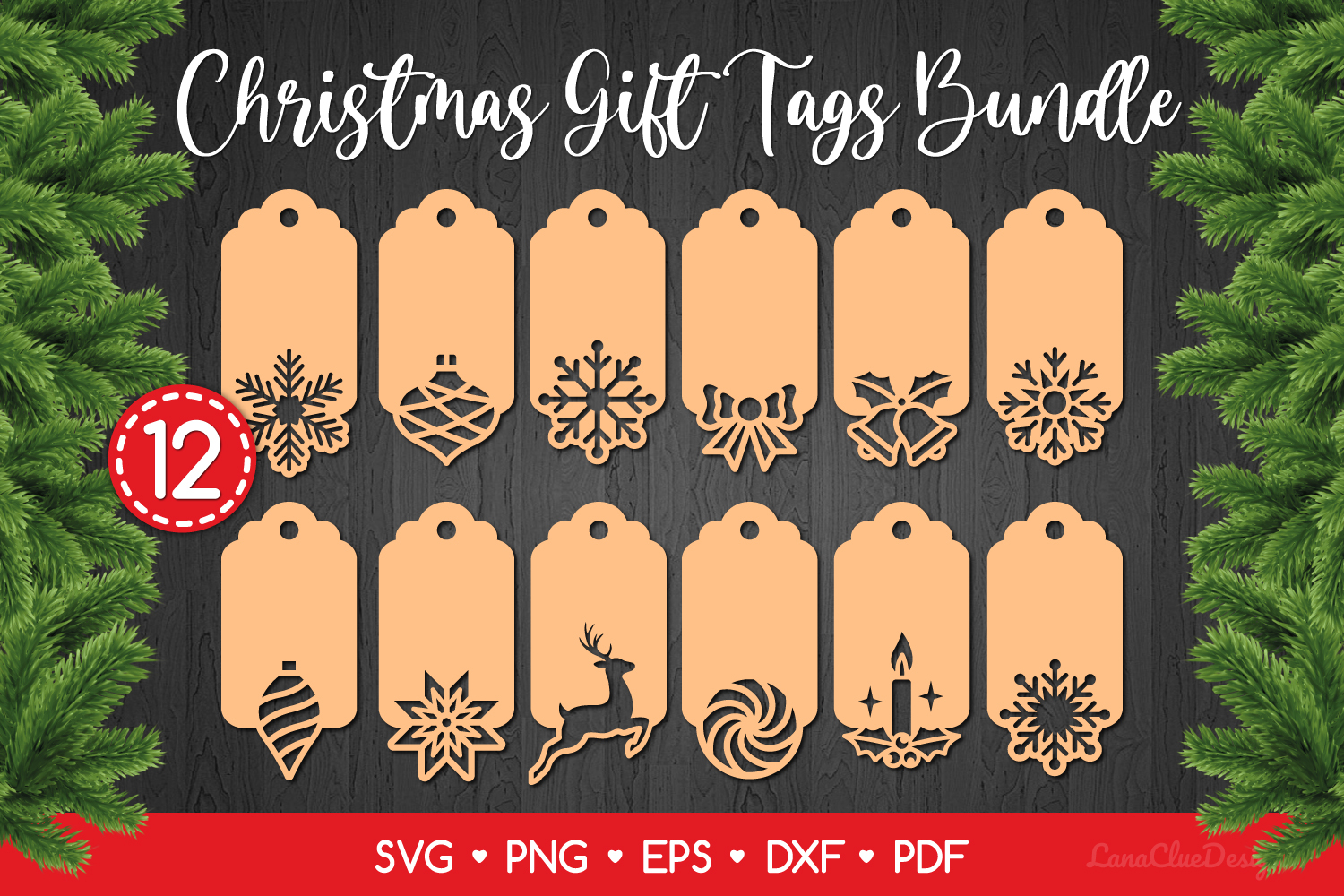 Christmas Decorative Gift Tags Bundle, Papercut Tag Templates. The set consists of 12 designs. These files are compatible with Laser, Cricut, Silhouette and other Cutting Machines.