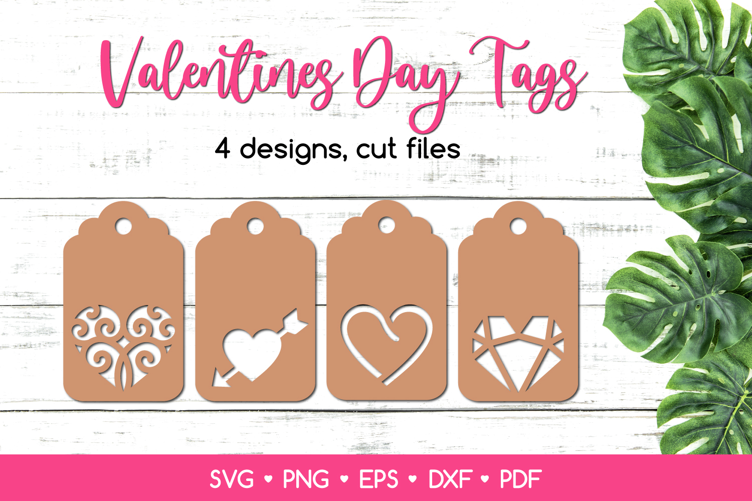 4 Gift Tags with Hearts SVG Cut Files, Valentines Templates example image 1