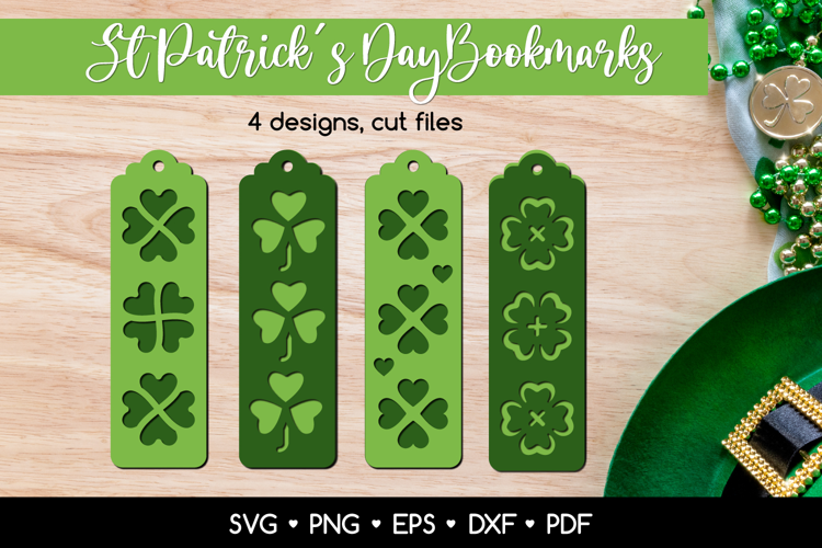St Patrick's Day Bookmarks with Shamrock - Paper Cutting Templates. The set consists of 4 designs + second layer.