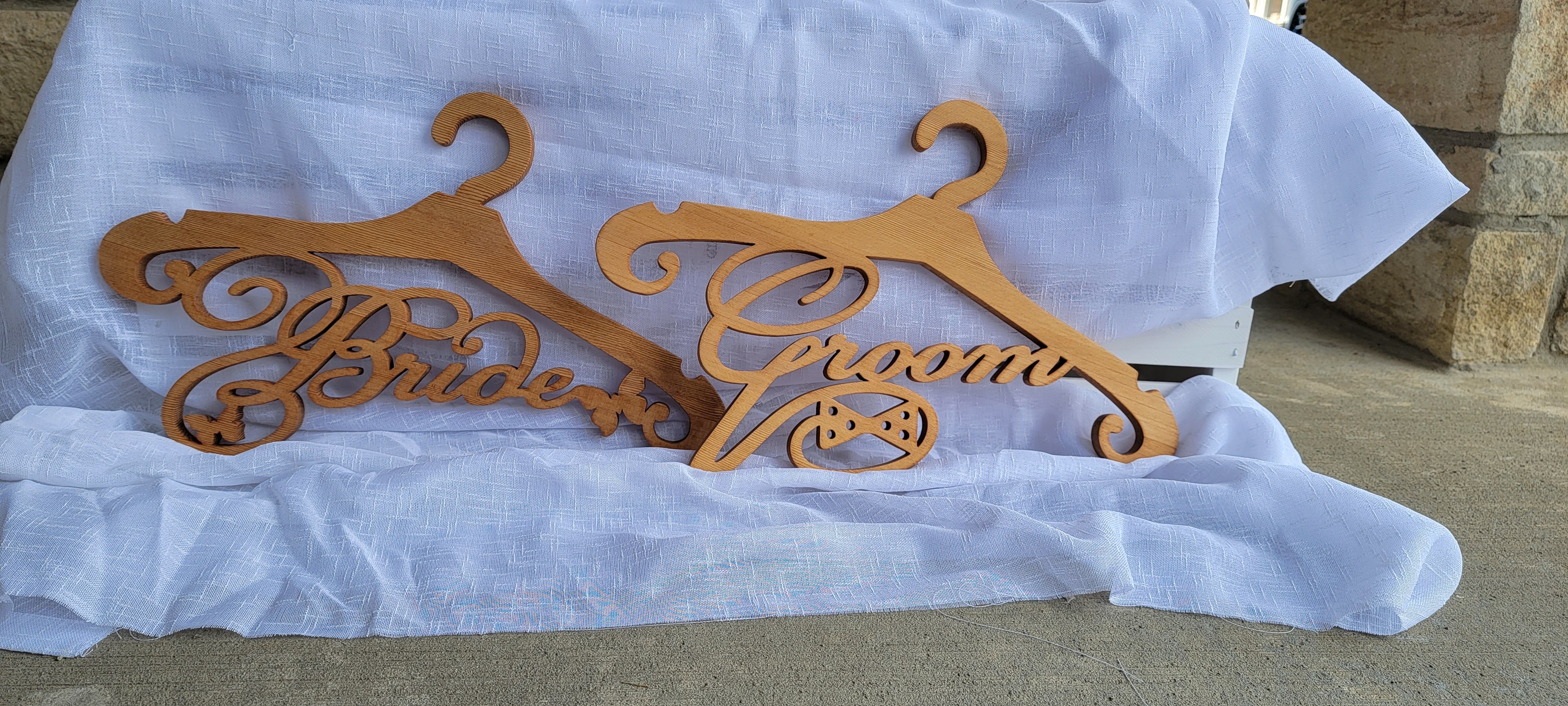 Exclusive design of wedding hangers for Bride and Groom are made for laser cutter, CriCut, Glowforge and any other compatible cutting machine.