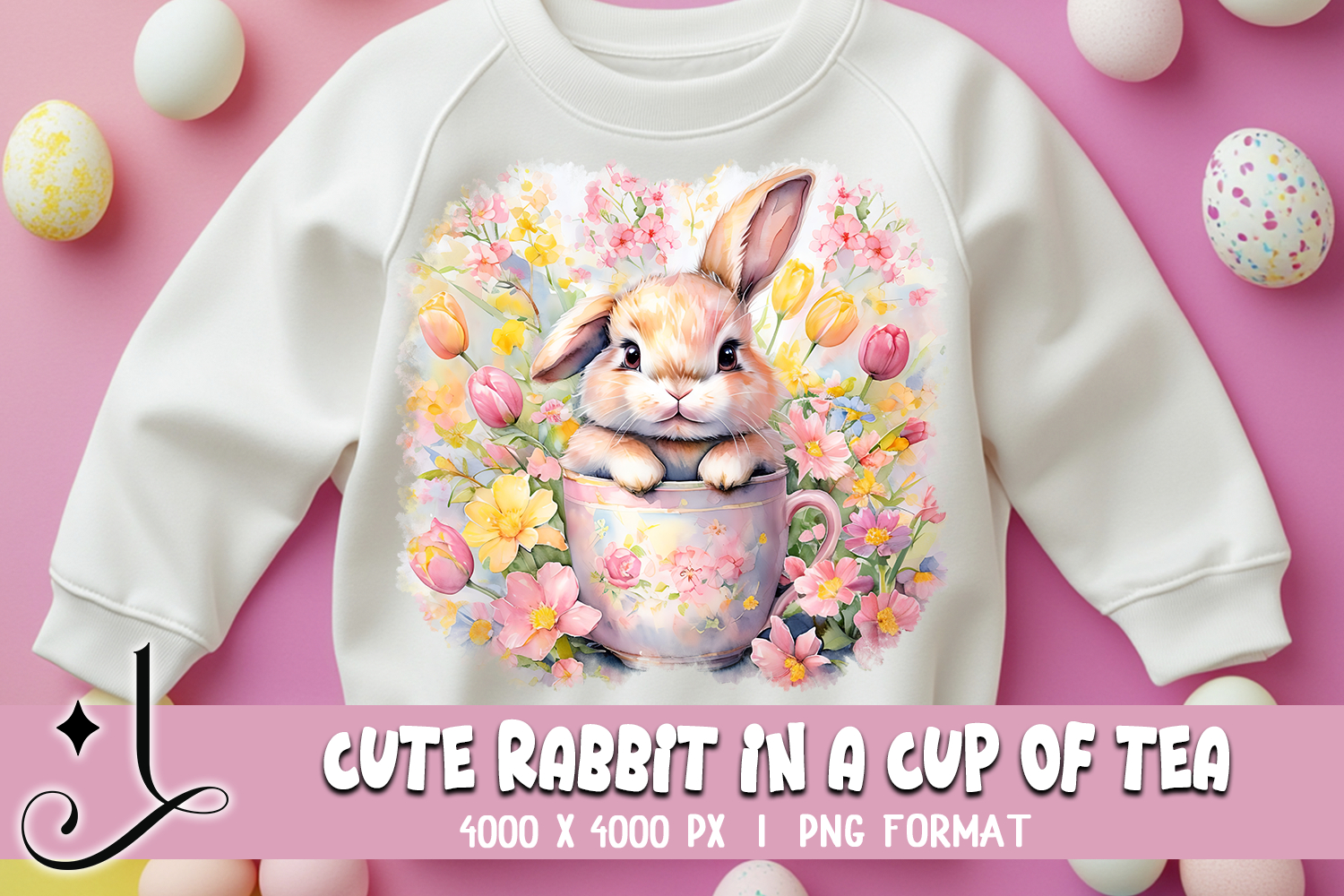 Cute Rabbit in a Cup of Tea - Easter Sublimation