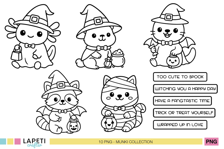 Cute Kawaii Halloween Clipart Kawaii Halloween Digital Stamps Halloween Animal Digital Stamps Halloween Coloring Stamps Png Trick Or Treat Outline Clipart Halloween Animals Outline Design Halloween Scrapbooking Clipart Png Cute Halloween Animals Coloring Pages Halloween Cardmaking Digital Stamps Munki Crafters