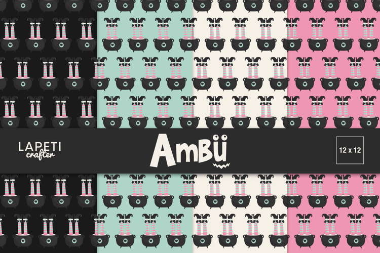 Part of the Ambü Collection, a pastel Halloween set featuring kawaii witches, cauldrons, hats and skirts with striped stockings. The perfect mix of cute and spooky for your seasonal designs.