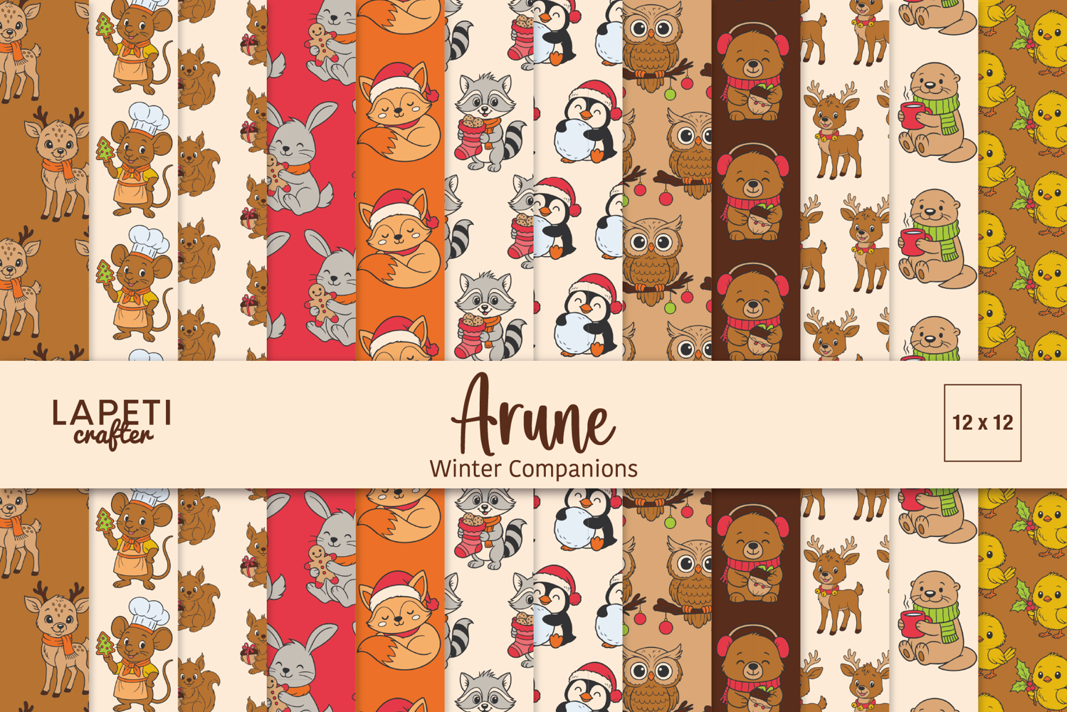 Bring warmth and cuteness to your Christmas projects with this adorable winter paper pack featuring woodland animals like foxes, penguins, reindeer, owls, and bunnies. Each pattern is filled with festive charm and soft seasonal colors — perfect for cozy, creative projects.