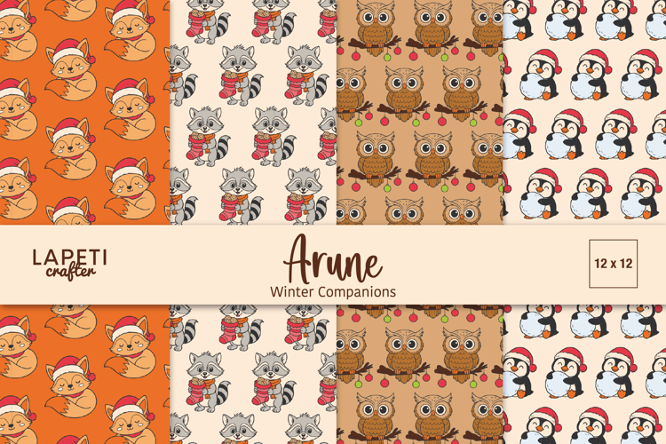 Woodland Animal Pattern Cute Christmas Papers Winter Forest Digital Paper Holiday Craft Paper Winter Animal Digital Paper Arune Rp Fox Raccoon Owl Penguin Paper Kids Scrapbook Paper Pack Cozy Animal Backgrounds Seasonal Printable Papers