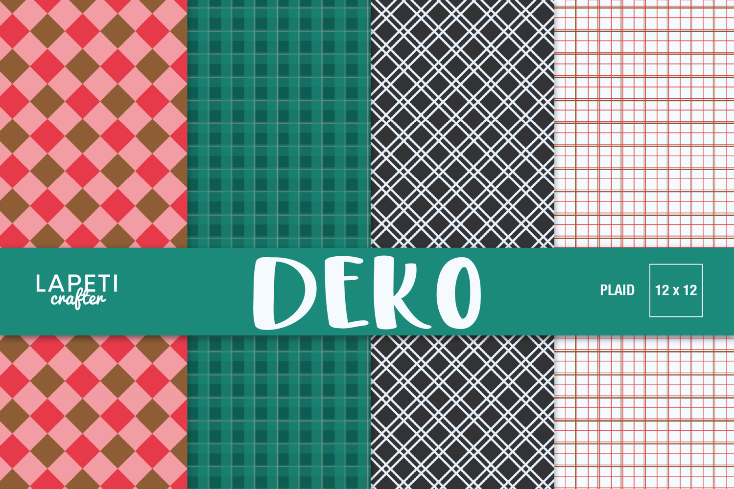 Plaid digital paper pack with red, green, brown, and black tartan patterns for festive crafting projects.
