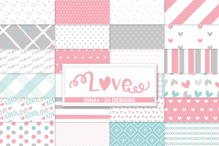 Valentine Pastel Digital Papers, 24 Love Pattern Designs