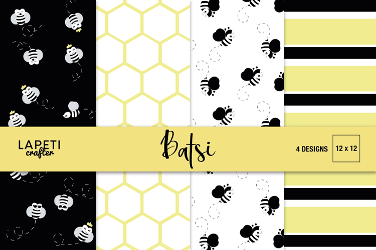 This set includes 4 coordinated designs: cute bees, honeycomb pattern, bold stripes, and minimalist black-and-white prints — perfect for spring, nature, or crafting themes.