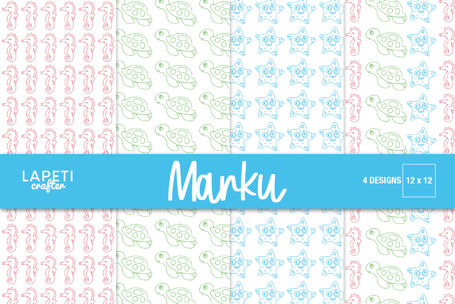 Similar Design Products to Ocean Digital Paper for Kids, Outline Sea Animals Pattern