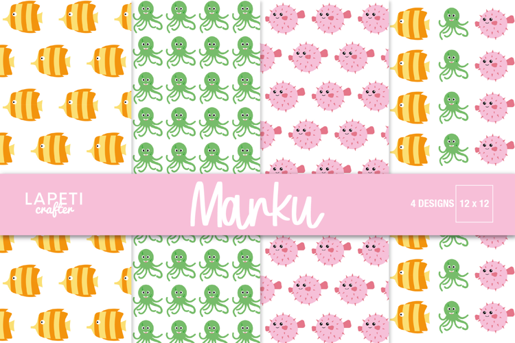 These ocean themed digital papers feature cute fish, octopus, and pufferfish patterns that are perfect for children’s projects, baby themes, and nautical designs. The simple and colorful style makes them easy to use for printing, crafting, and digital scrapbooking.
