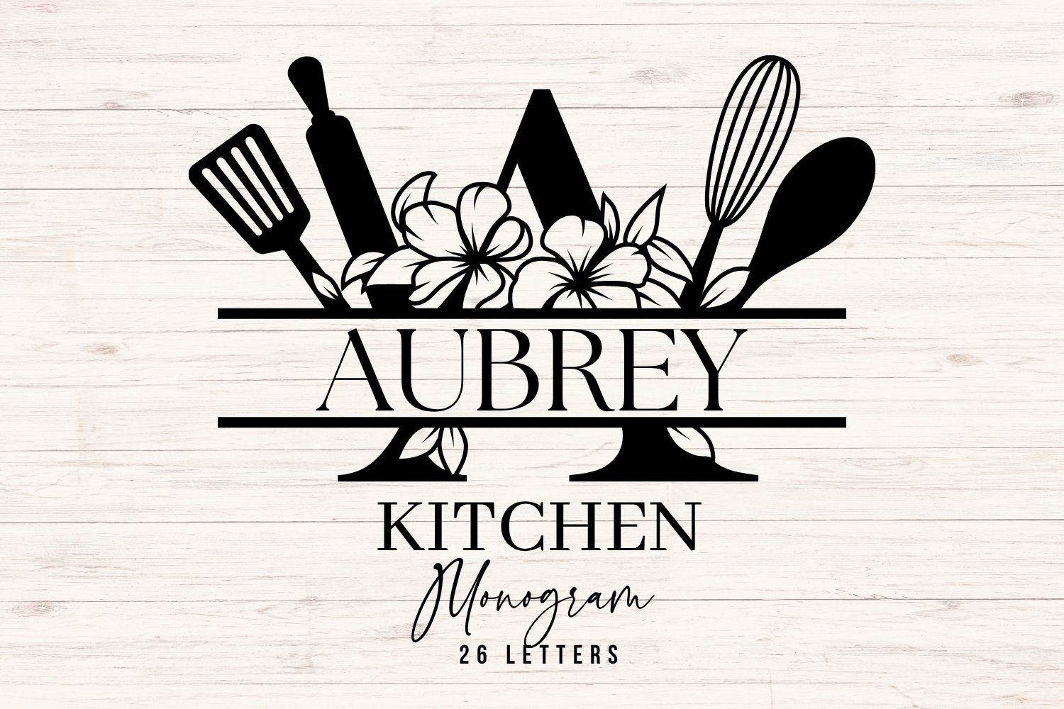 Use these kitchen monogram files for kitchen signs, aprons, shirts, tote bags, cutting boards, vinyl decals, baking gifts, cooking gifts, laser engraving, sublimation, and DIY craft projects.