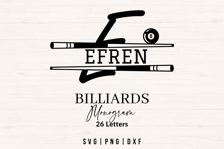 This Billiards Split Monogram SVG Bundle features a complete A–Z alphabet of split letter designs with a pool cue and 8 ball theme. Each letter is hand-drawn and designed for easy name and custom monogram projects.