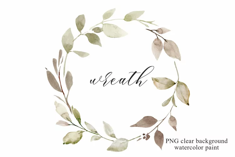 Watercolor leaves, floral clipart, wreath, frame with leaf, PNG transparent background, aquarelle clipart.