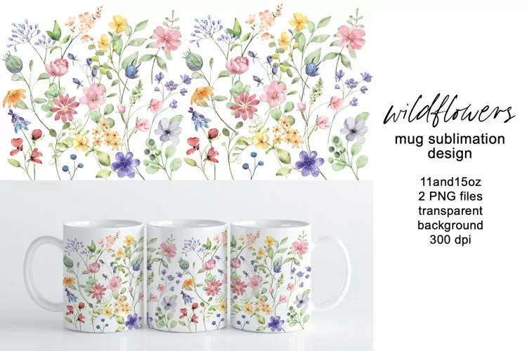 Watercolor Flowers Digital Png Wildflowers Sublimation Sublimation Mug Sublimation Design Mug Sublimation Mug Wrap